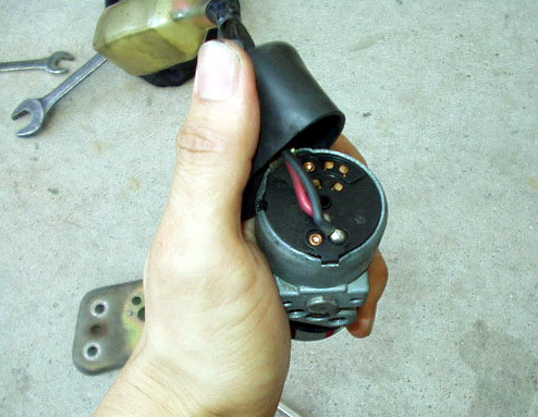 メインスイッチの接点清掃をするべく、キーシリンダーの取り外し。