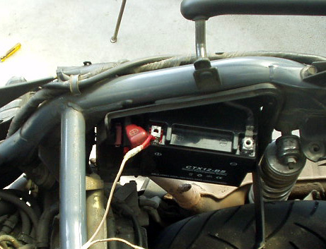 まずはバッテリーから、メインスイッチのカプラまでバイパス線を引いてみると。