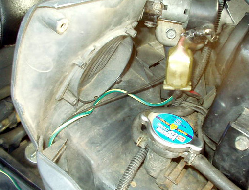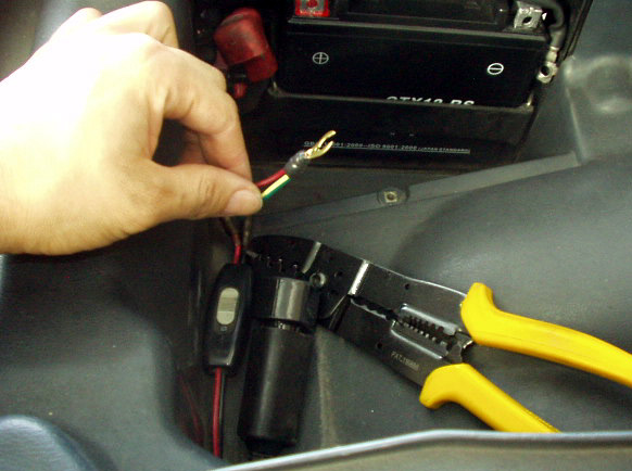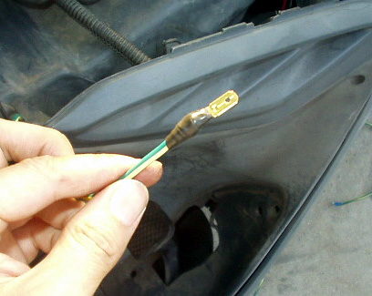 バイパス線メインスイッチ側には平型端子を取り付け、メインスイッチカプラに差し込んで固定。