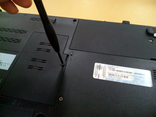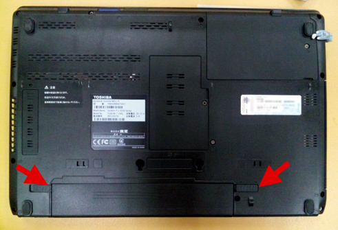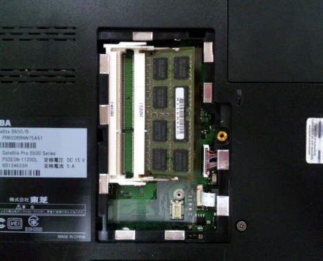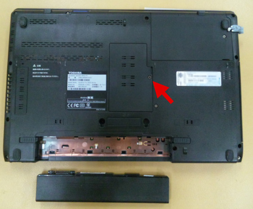 まずバッテリーを取り外し、メモリースロットの位置を確認しました。