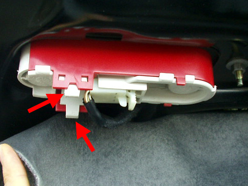 取り付けにあたり、トランクの内張りの一部を、留め具を外してめくりました。