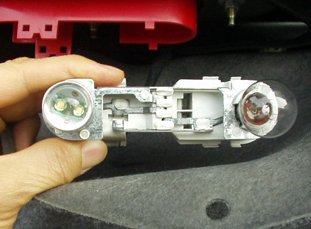 LEDの発光部が二つ埋め込まれています。156のバックランプはリフレクターが機能していないようですので、今回もプロジェクタータイプを選択しました。
