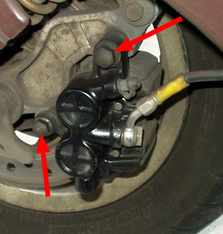 あわせてブレーキキャリパーも取り外します。今回パッド残量は十分なため取り替えませんでした。