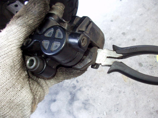 ブレーキレバーを何度も握りこんで、しっかりと油圧を掛け、ピストンを押し出しておきます。
