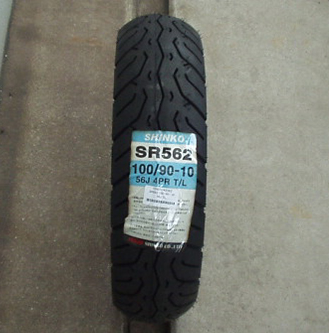 今回使用するタイヤは、SHINKO SR562 100/90-10 前後輪共用。