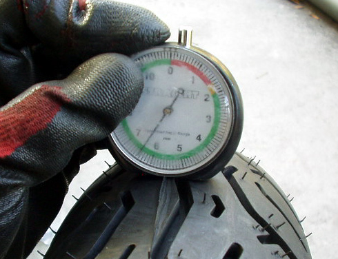前回交換時は走行距離64607km時。ダンロップ SX-01F 交換時溝の深さ4.6mm