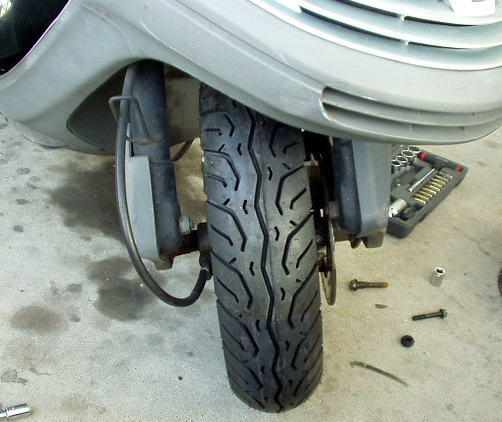 用意したタイヤ付きホイールを逆の手順で取付けます。