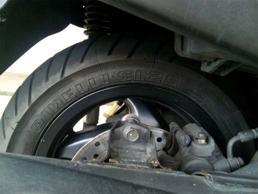 後輪タイヤは ピレリ SL26 130/70-12 溝の残りは約3.5mm