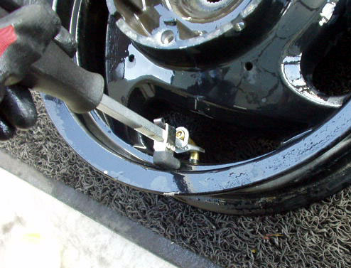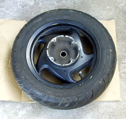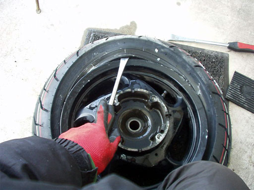 いつも通りタイヤレバー三本を使用して取り外し、グラインダーで一部カットして楽に取り外しました。