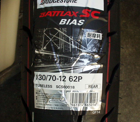 新しく購入したタイヤは、ブリヂストン BATTLAX SC 130/70-12