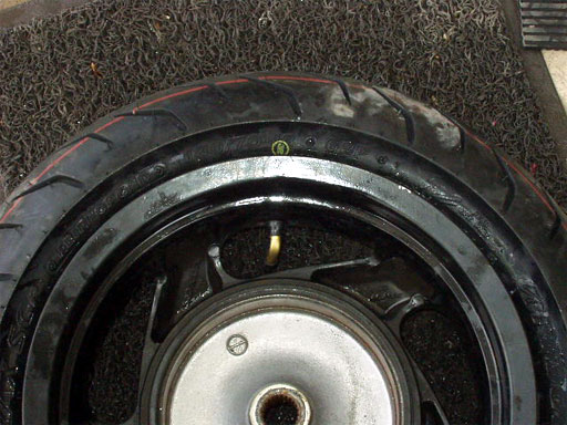 タイヤの黄色 軽点マークをエアバルブの位置に合わせておきます。