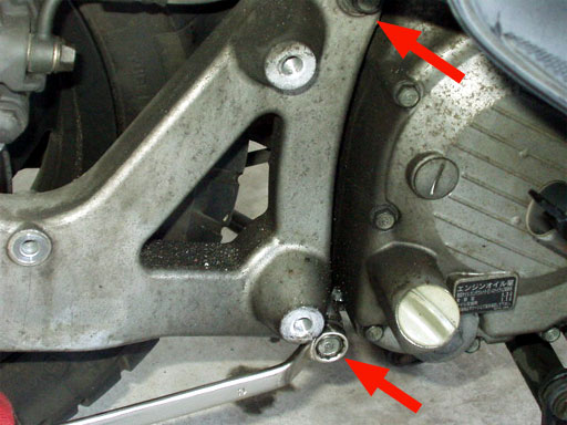 まずはマフラーの取り外し。右上部分だけ長めのボルトが使用されていました。