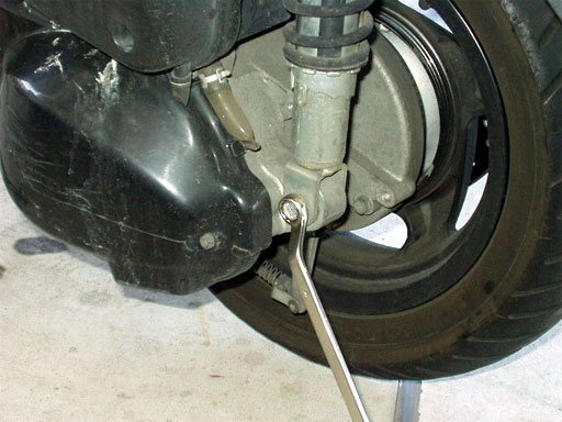 その際、後輪ブレーキレバーを固定しておくと、アスクルナットの取り外しがスムースに進みます。
