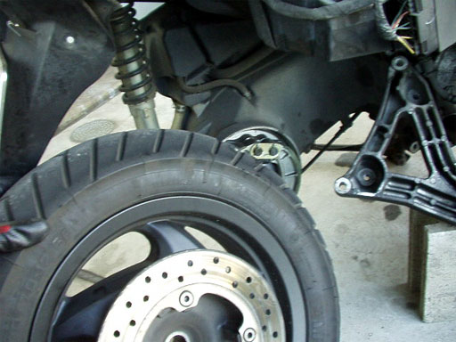 キャリパーを取り外していますので、試運転前にリアブレーキレバーを握りこんで