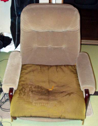 今回リクライニング付き座椅子の背部クッション下に埋め込む形に変更。