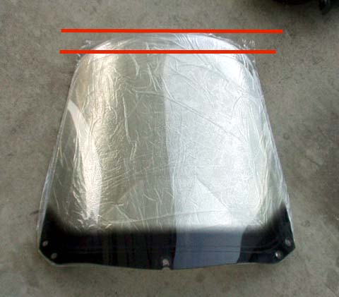 純正ウインドシールドと比較すると、3cmほど高くなります。幅はほぼ変わりません。