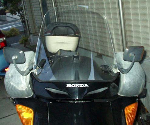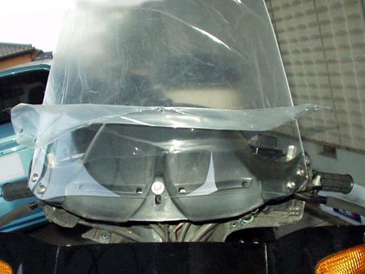 ハンドル外装を4本のねじで、ウインドシールドも5本のボルトで取り付けられています。