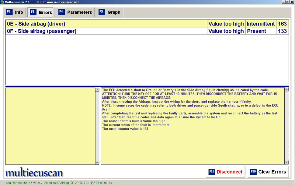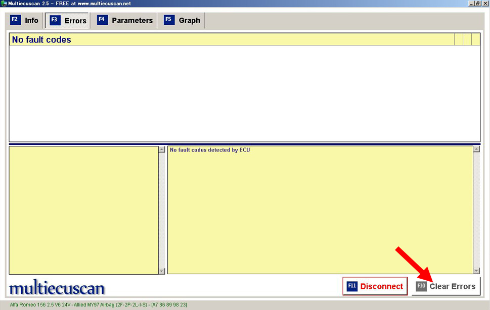 Clear Errors クリックで警告灯消灯。