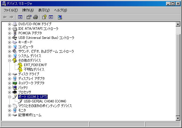 コントロールパネル → システム → デバイスマネージャー からポート番号確認