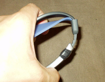 ヘッドバンドが軟質樹脂製ですので、自分の頭に合わせて捻ったり曲げたり。