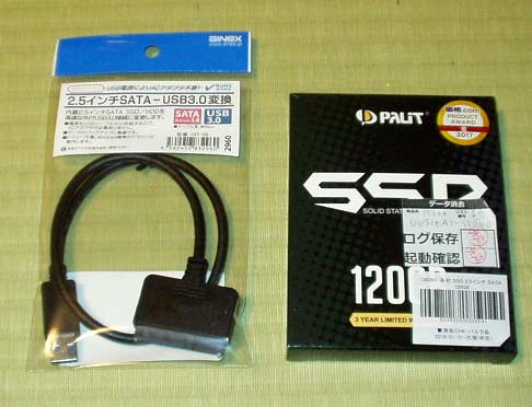 まず、SATA変換アダプタと中古120GB SSDを購入。