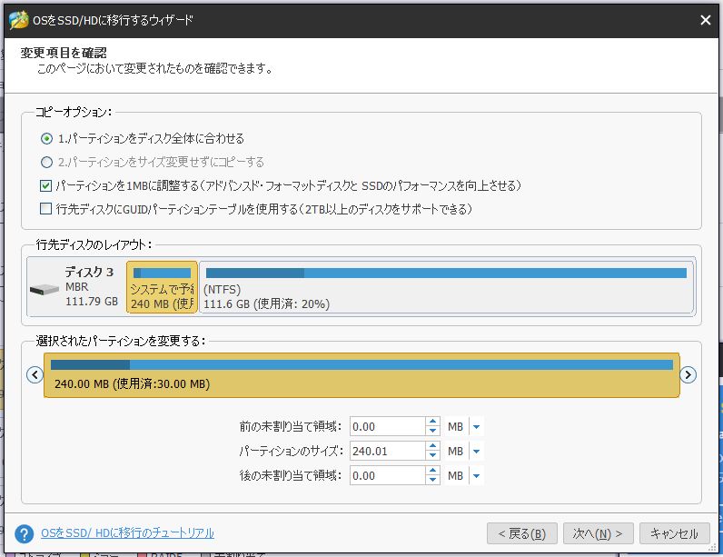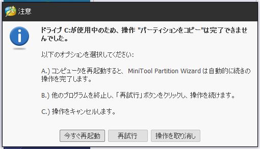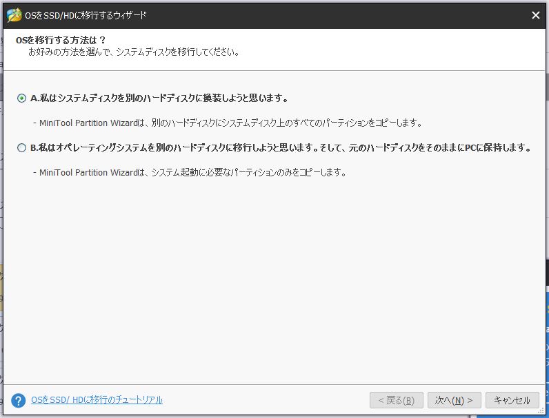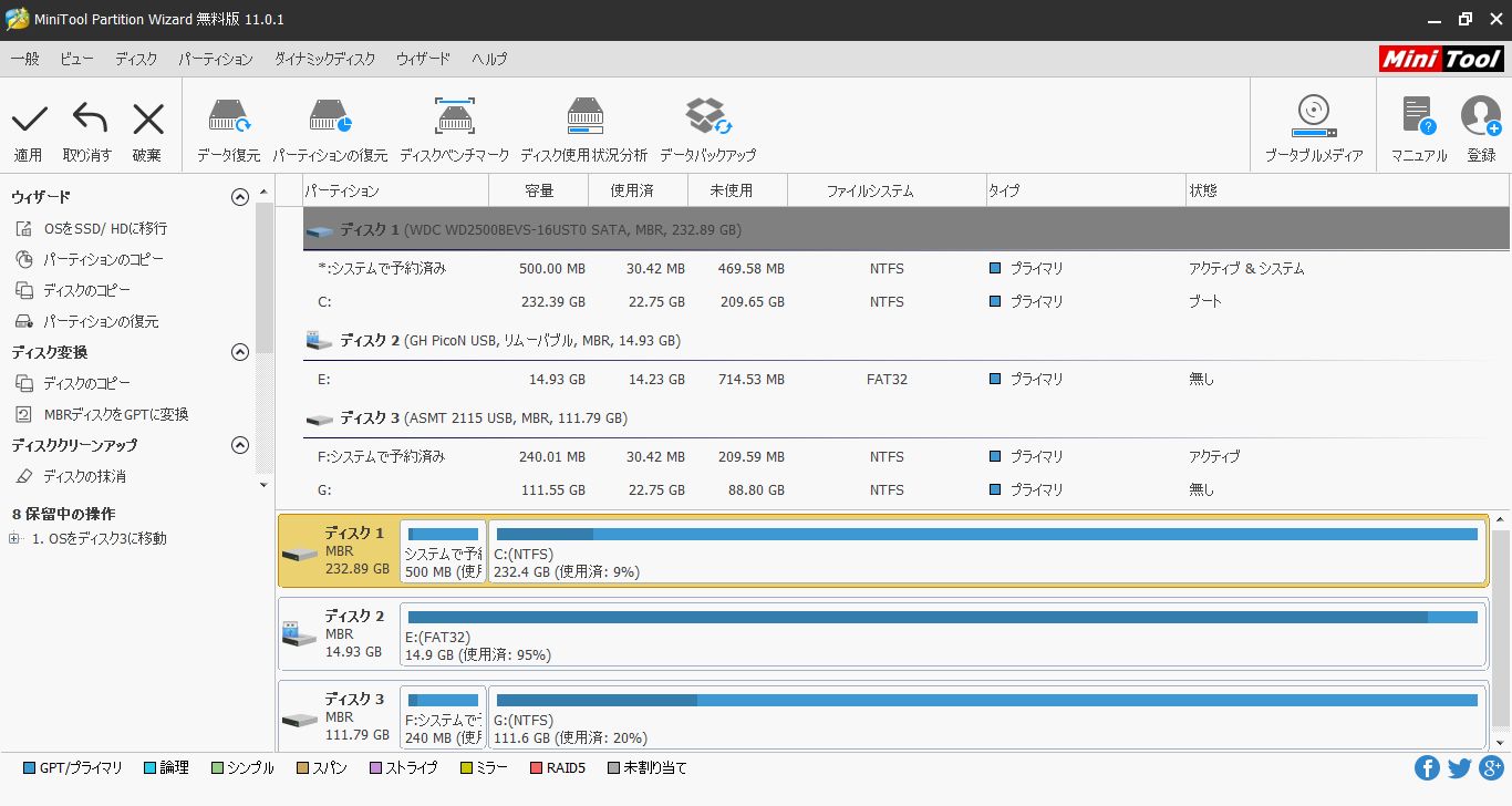 環境移行には、MiniTool Partition Wizard を使用しました。
