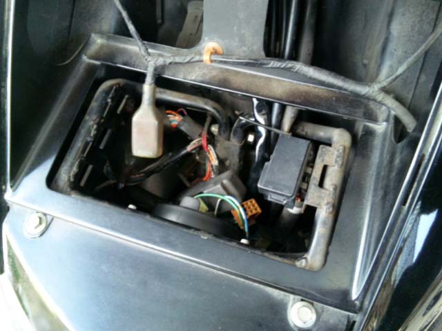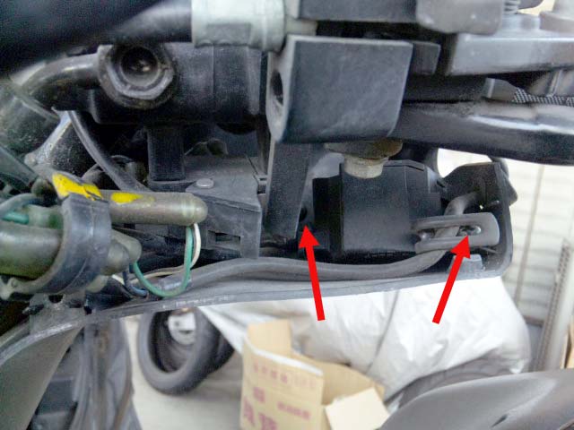 フロントカバー内部の深い位置にコネクタあるため、リレーなどを外して作業スペース確保。