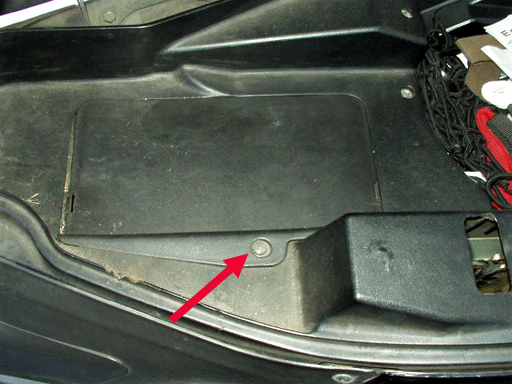 冷却液交換はメットイントランク内のメンテナンスハッチを開けて行います。