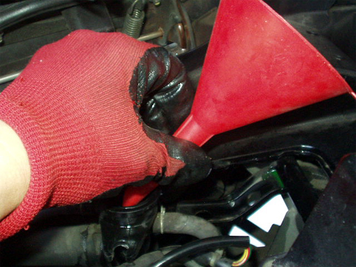 ラジエーターキャップ部分より注ぎ口いっぱいまで注入。