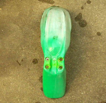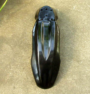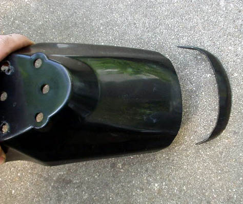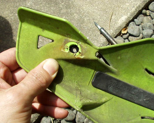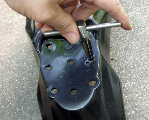 汎用品ですので取り付け穴の位置が合いません。取り外したフェンダーに合わせてハンダゴテで溶かして穴を開け、リーマーで拡大しました。