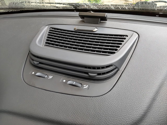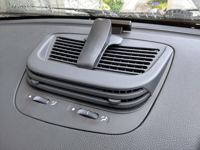 曲面で構成されたこの形にスマホホルダーを収めるなら、中央のエアコン吹出口に取り付ける必要があります。
