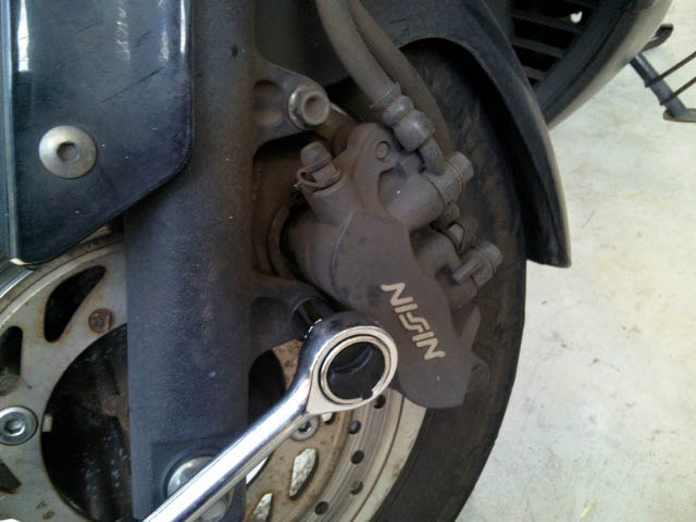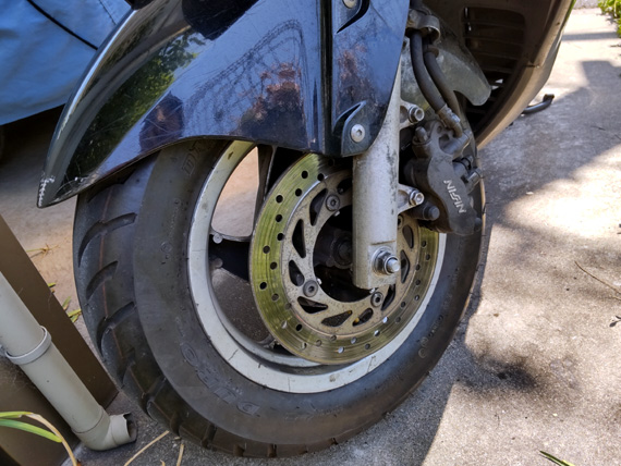 先日フロントタイヤを交換したあと、フロントブレーキの引摺りとブレーキングでの振動が出てしまいました。フロントブレーキの不調は深刻ですので、早めに対処しました。