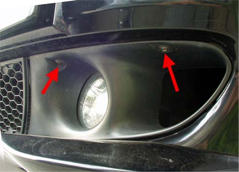 フォグランプのカバーを下から留めるビスを二箇所外します。