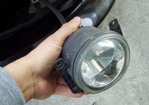 フォグランプカバーはビス以外にも、右画像左下に差し込まれて固定されているため手前に引っ張って外すようにします。