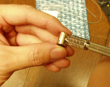 分解してみても明らかな不具合は見つからなかったため、マイナス線をしっかりと留めるようにソケット部分を加工してみました。