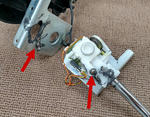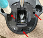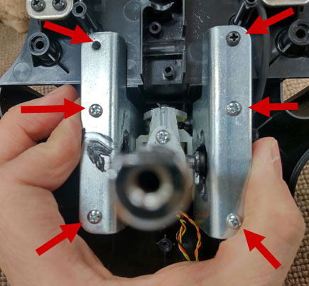 6本のネジを緩めてシフター機構部分を取り外すときは、手で挟んで抑えて置かないと部品が飛び散るおそれがあります。
