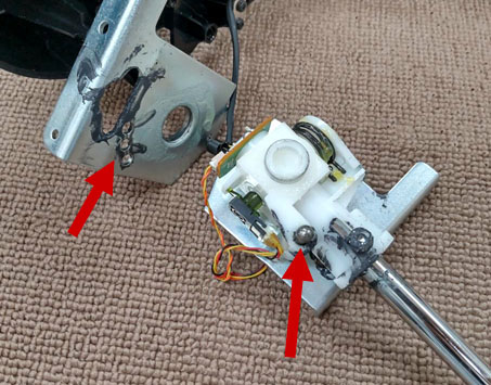 気をつけて機構部分を取り外し。鉄球の下にバネがありガイド穴に嵌まりながら動くことで、変速する際の節度感を出す仕組みのようです。