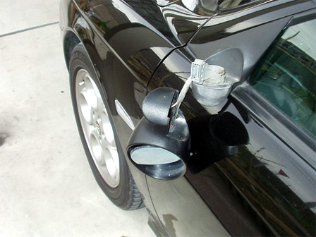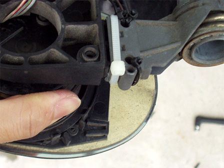 電動ミラー部分を挿し込み、タイラップで補強してみました。