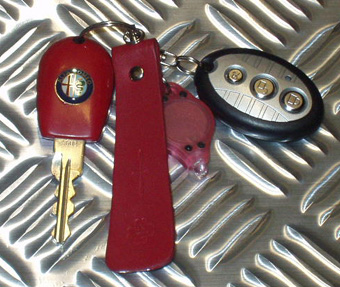 しかしながらリモコンは黒い樹脂製で、キーヘッドに合わせて赤で統一したキーホルダー類に合いません。