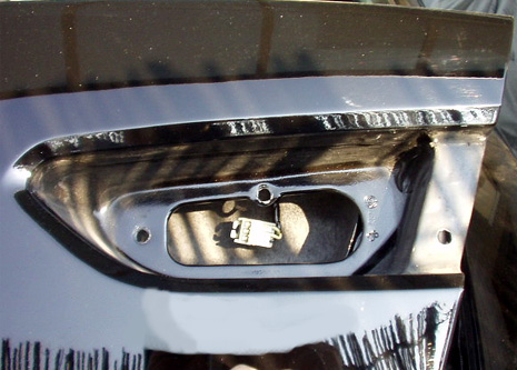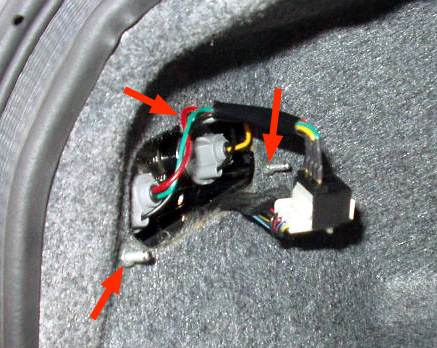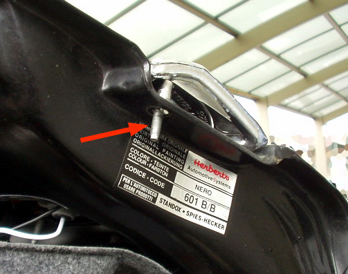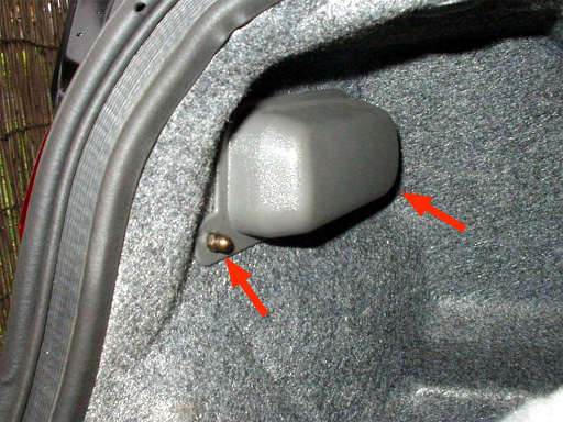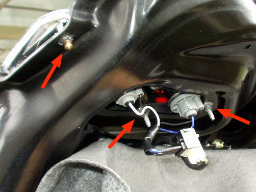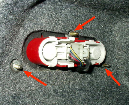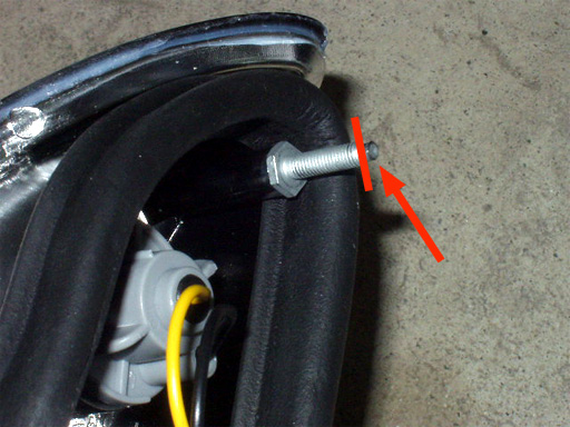 内張りを剥がすと見える、バックランプ/リアフォグランプを固定するナット。