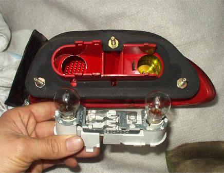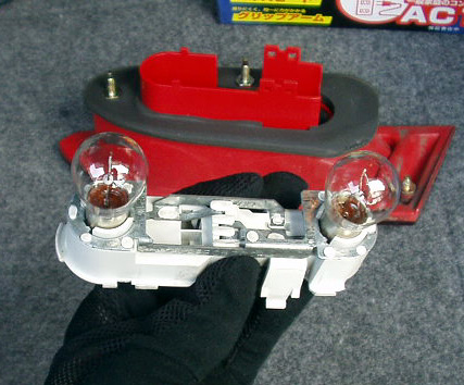 使用電球を見てみると、テールランプは黒く曇って寿命が尽きる寸前でした。