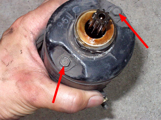 後輪の前にあるのがセルモーターです。